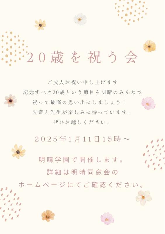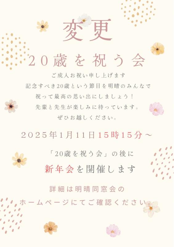 【変更: 明晴学園 卒業生 20歳を祝う会および新年会 開催のご案内】